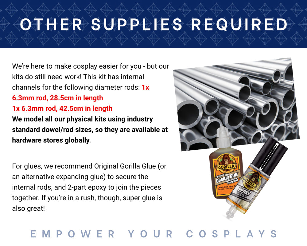 The Gerudo Scimitar measures approx. 80cm long, we have options to get the prop with or without the scabbard!!, the prop and has internal channels modelled in for dowels to add strength to the internal structure (we recommend using aluminium rods to reduce weight):